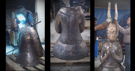 Diese wurde Vorort durch 3d scanning digitalisiert und mit diesen 3D Daten fertigten wir die 3,40m Höhe Skulptur in Originalgröße in Bronze an.