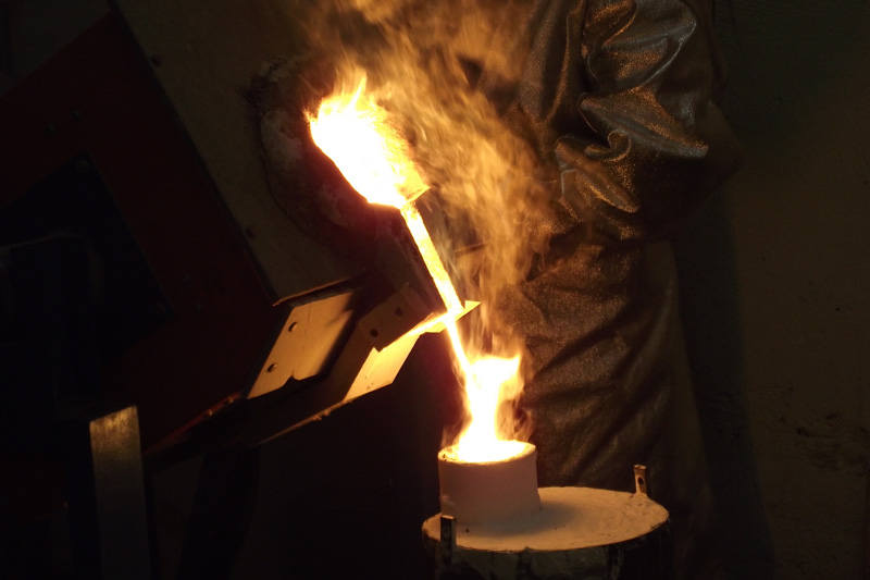 Das flüssige Metall (z.B. Aluminiumgusslegierungen) wird direkt auf das Polystyrolmodell gegossen.